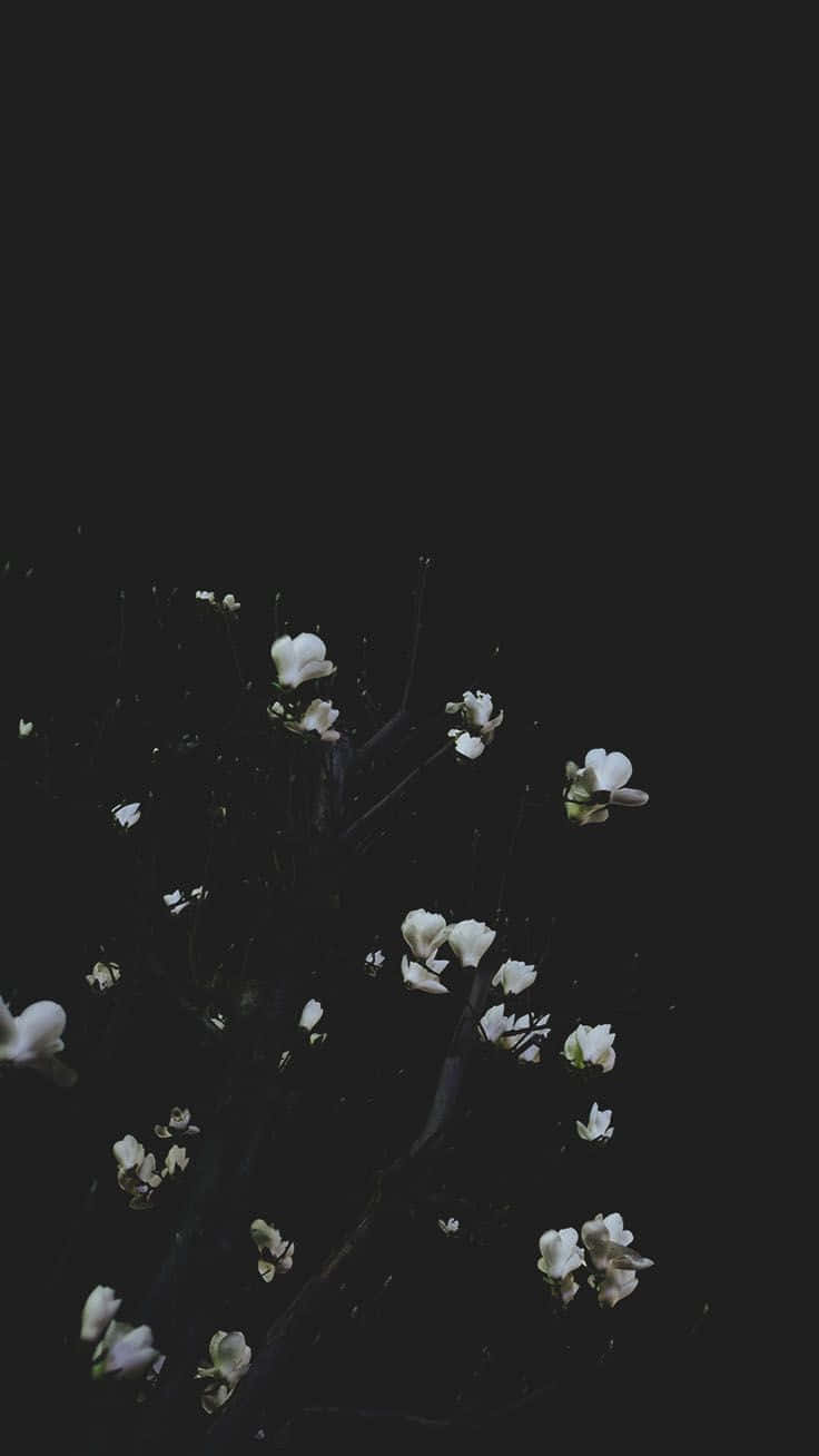 White Flowers On A Tree In The Dark Wallpaper -