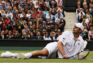 "andy Roddick Resting On Tennis Court" Wallpaper -