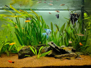 A Peaceful View Of A Vibrant Aquarium Fish Tank Wallpaper -