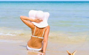 "enjoying The Summer Sun In A Stylish White Bikini On The Beach." Wallpaper -
