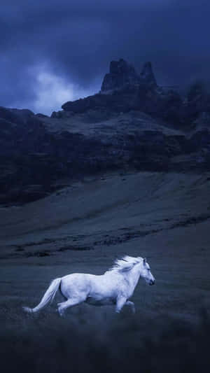 A Beautiful White Horse Galloping Through A Scenic Landscape Wallpaper -