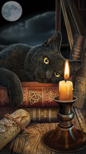 Spooky Black Cat Enjoying A Night Of Halloween Fun Wallpaper -