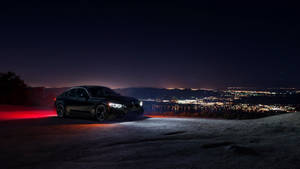 A Sleek Bmw In The Cityscape, With Skyline In The Backdrop. Wallpaper