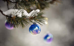 Christmas Ornament Hanging On A Tree Branch Wallpaper -