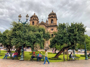 Majestic View Of The Church Of The Society Of Jesus In Cusco, Peru Wallpaper  -
