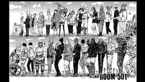 A Black And White Drawing Of A Group Of People Wallpaper -