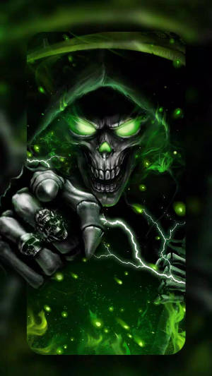 "a Menacing Green Fire Skull Radiates Danger" Wallpaper -