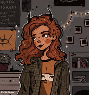 Grunge Cartoon Girl Short Hair Sleepy Eyes Wallpaper -