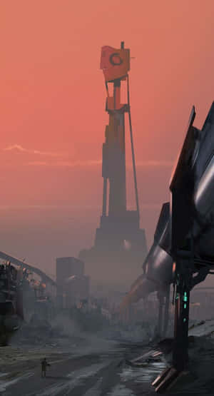 A Video Game With A Large Robot In The Background Wallpaper -