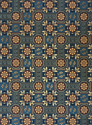 A Blue And Gold Painting With A Black Background Wallpaper -