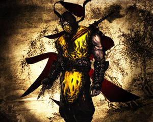 Mortal Kombat Scorpion Grunge Art Wallpaper -