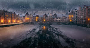 Standing In The Center Of A Snow-filled Winter Landscape Wallpaper -