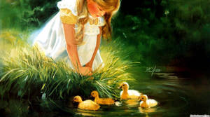 Allure Of Nature: Woman Adorned With Lynx Art Painting Wallpaper -