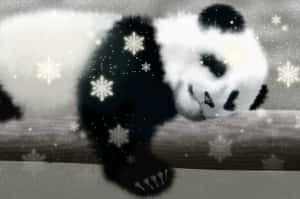 Panda Laptop With Snowflakes Design Wallpaper -