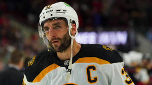 Patrice Bergeron Seemingly In Guarding Position Wallpaper -