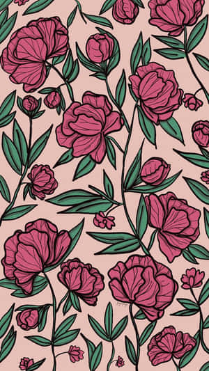 Rose Flower Outline In Pink And Green Aesthetic Wallpaper -