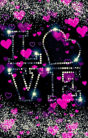 "spread The Love With Glitter Pink Hearts" Wallpaper