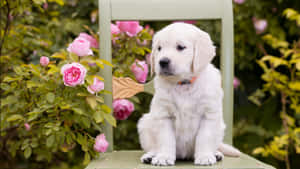 Adorable Blush-colored Puppies In A Bed Of Roses Wallpaper -
