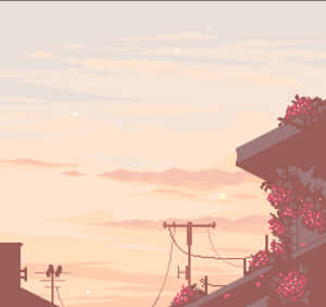 "beautiful Pixel Landscape Of A Cityscape During Golden Hour" Wallpaper -