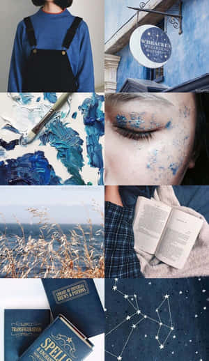 Ravenclaw Aesthetic Blue And White Collage Wallpaper -