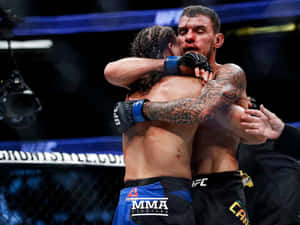 "renato Moicano In A Sportsmanlike Embrace With An Opponent After A Match" Wallpaper -