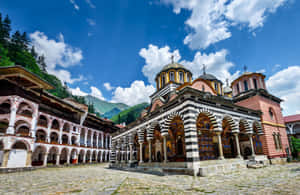 Majestic View Of The Rila Monastery Courtyard In Bulgaria Wallpaper -