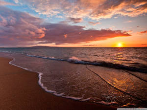A Picturesque Sunset At An Ocean Beach. Wallpaper -