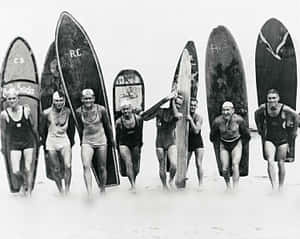 A Group Of Men Standing Next To Surfboards Wallpaper -