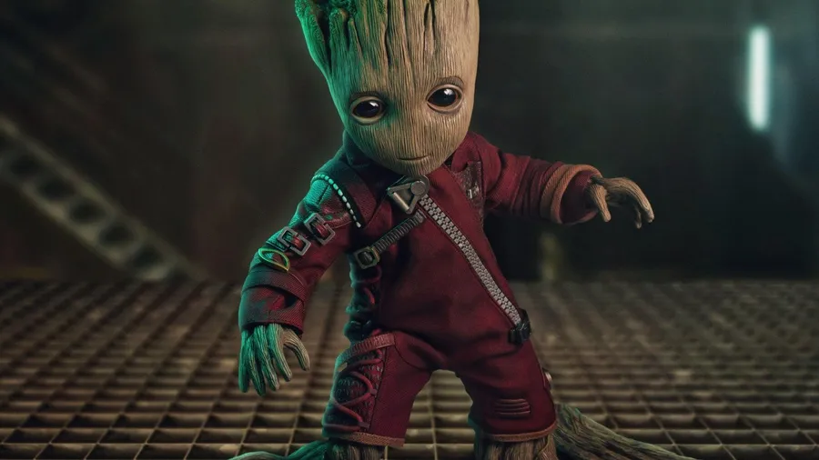 Related 4k Guardians Of The Galaxy With Baby Groot In Red Suit Wallpaper