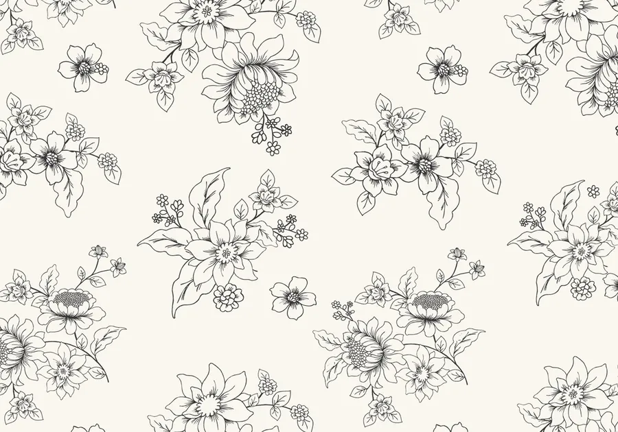 A Floral Pattern With Black And White Flowers Wallpaper -