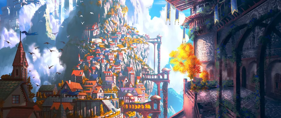 A Digital Artwork Of Futuristic Flying City Wallpaper -