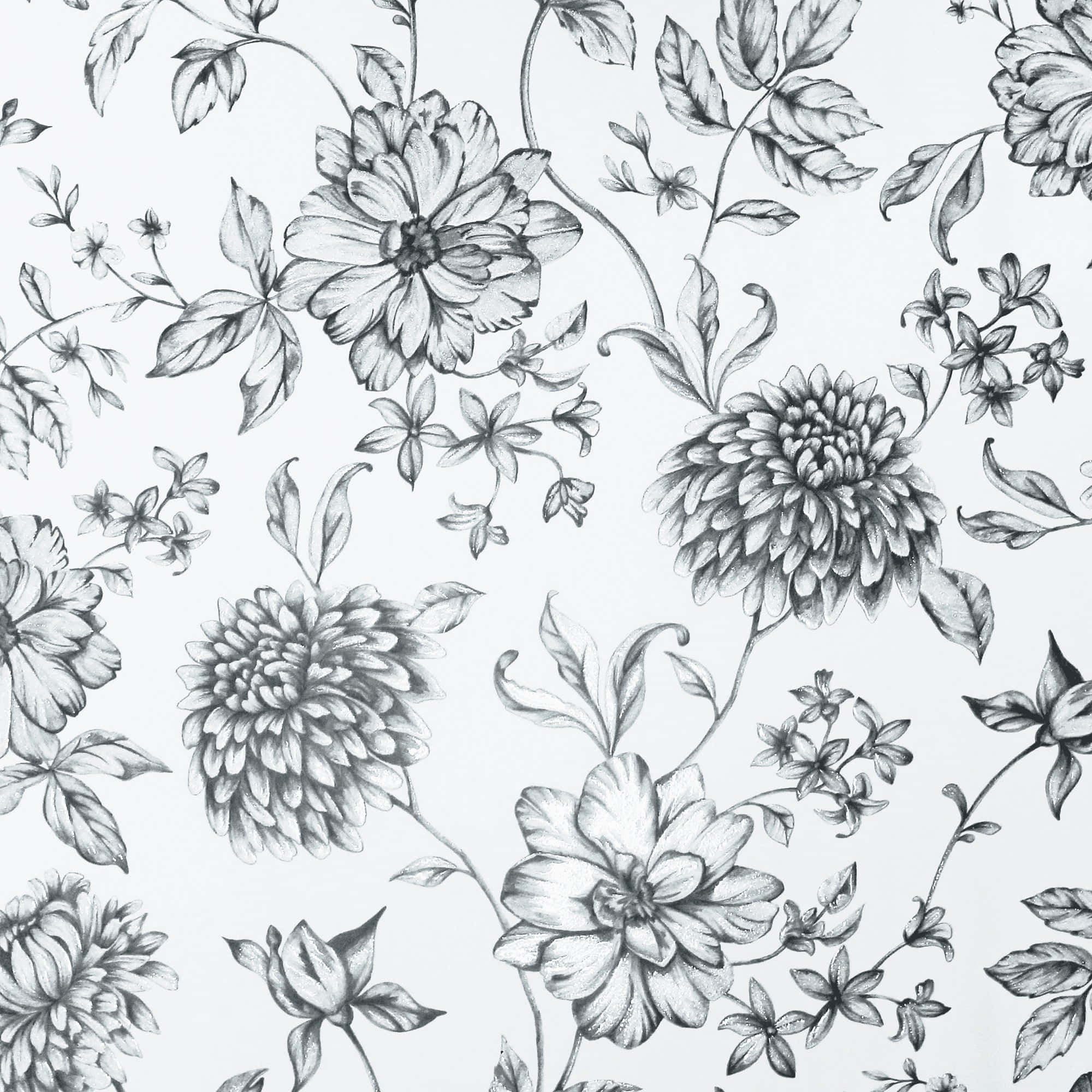 A Floral Pattern With Black And White Flowers Wallpaper -