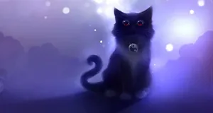Kawaii Anime Black Cat Silhouette Wallpaper -