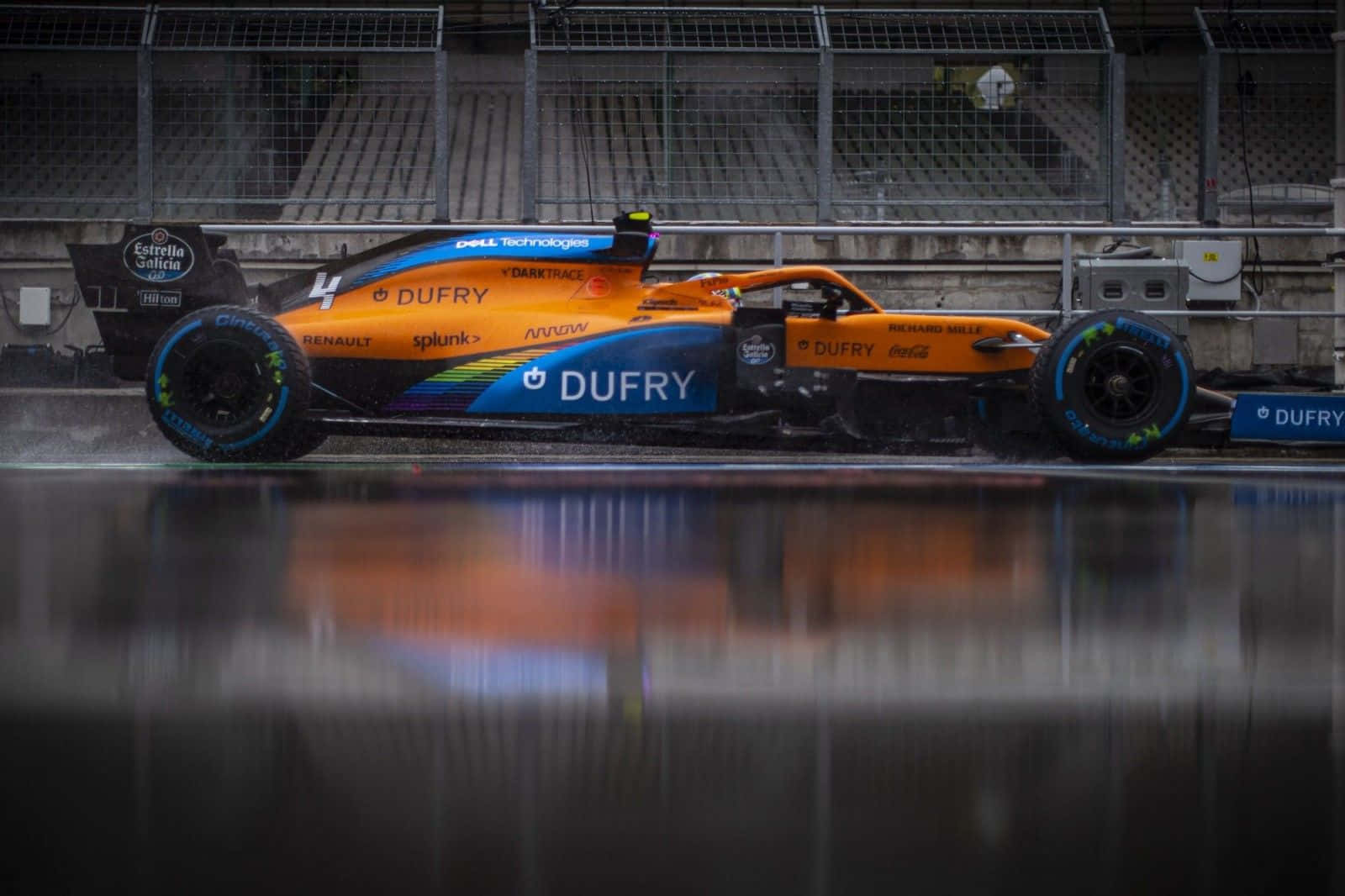 A Blue And Orange Racing Car Is Sitting On The Track Wallpaper