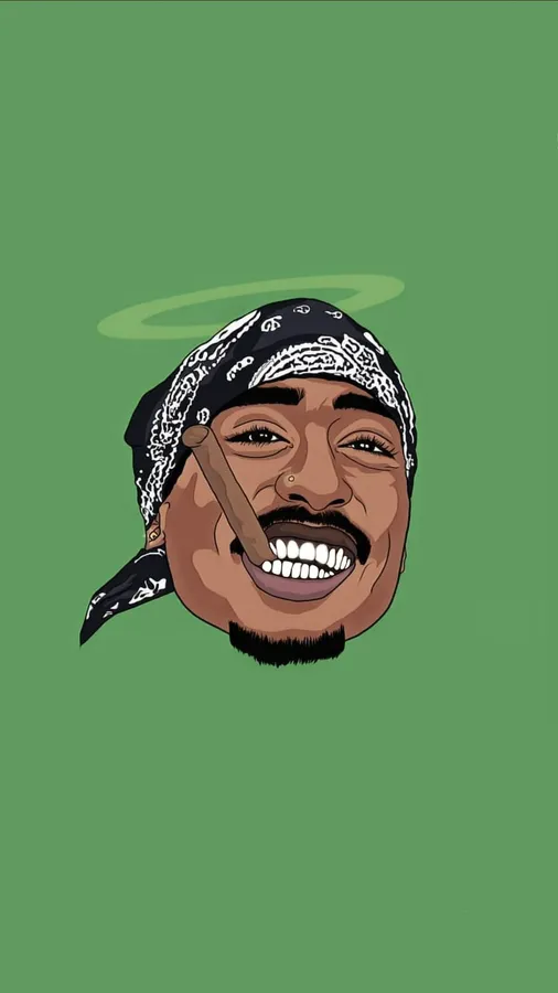 A Cartoon Illustration Of The Iconic Rapper Tupac Shakur -