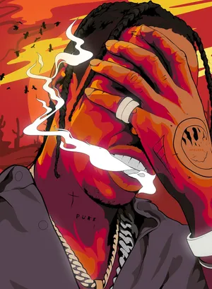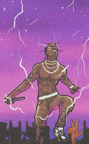 A Cartoon Rendition Of Rapper And Edm Producer Travis Scott Wallpaper