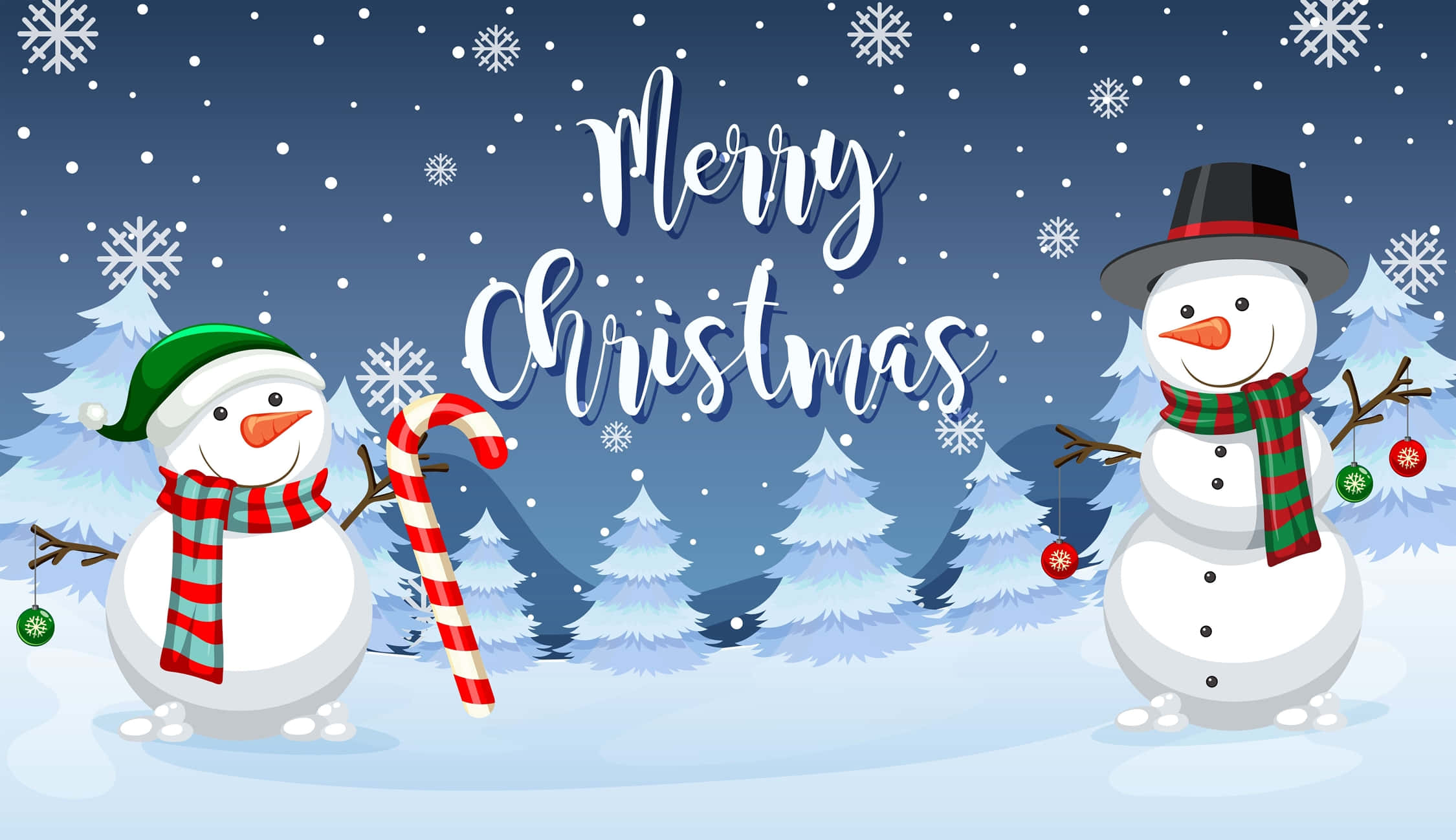 A Snowy Christmas Scene With A Festive Snowman Wallpaper -