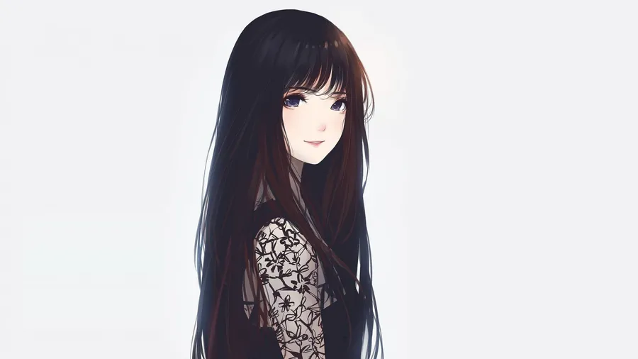 A Young Beautiful Anime Girl With Jet Black Hair Wallpaper -