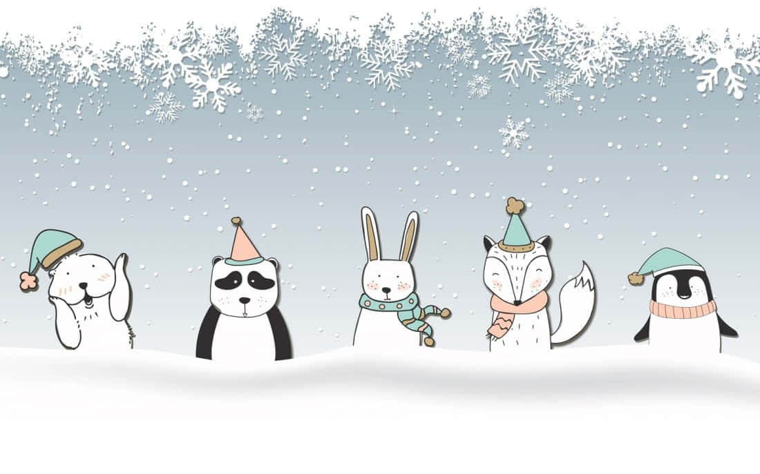 Cute Cartoon Animal Group Wallpaper -