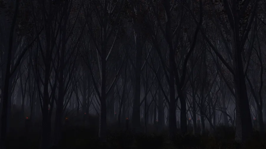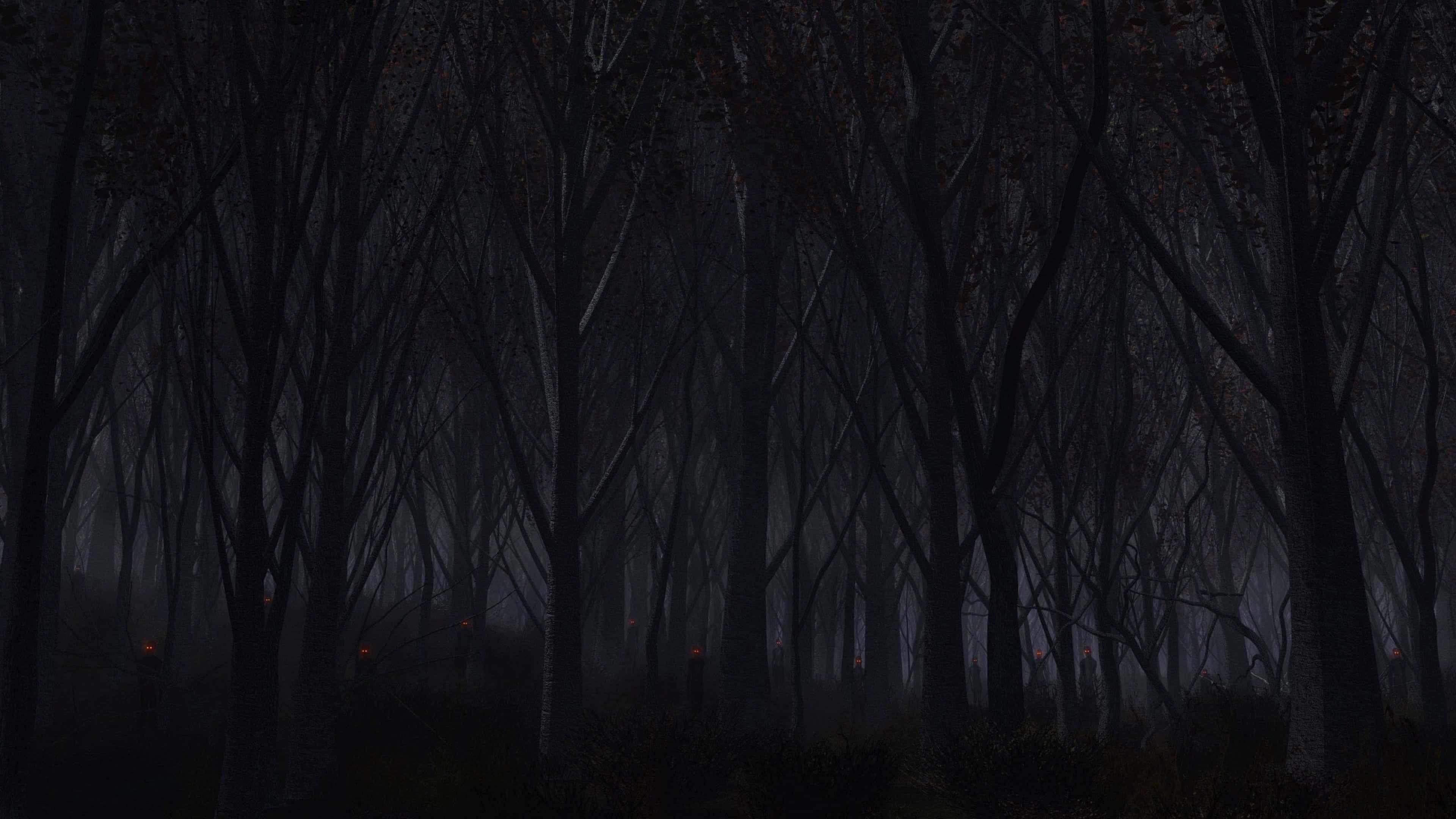 Related A Dark Forest With Trees And A Lamp Wallpaper