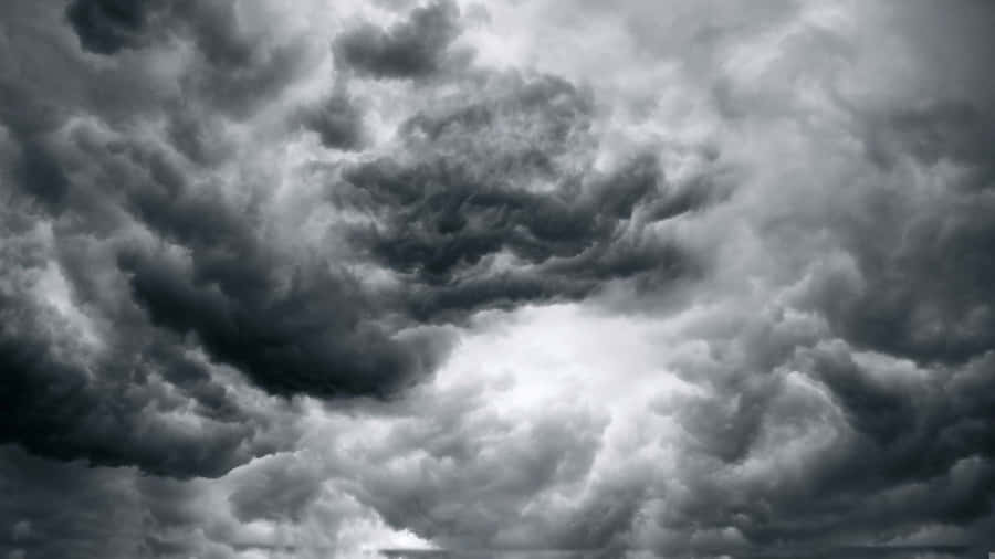 A Dramatic View Of Low-hanging Clouds Against A Black And White Sky. Wallpaper -