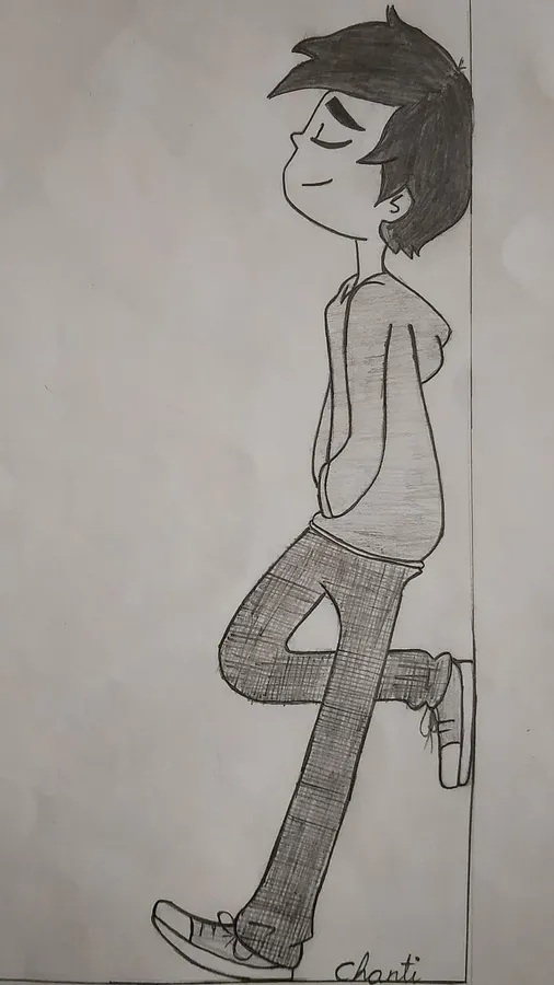 A Drawing Of A Boy With His Feet On The Ground Wallpaper -