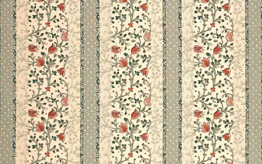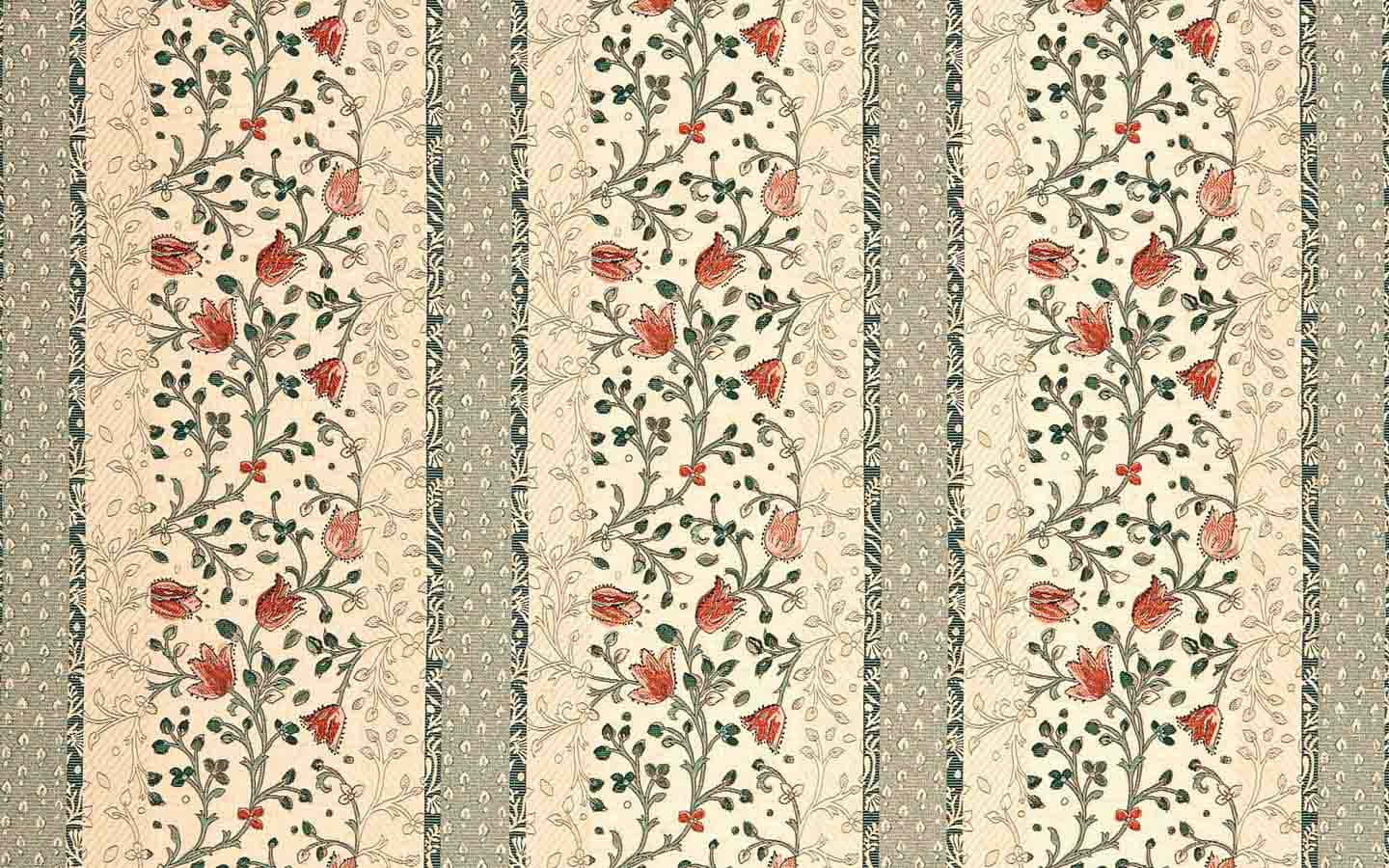Related A Floral Striped Fabric With Red And Green Flowers Wallpaper