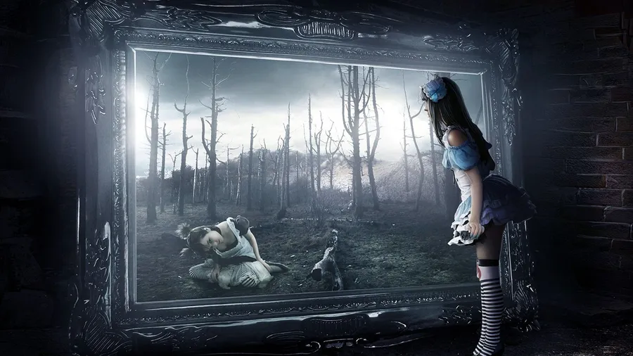 Related A Girl Is Looking At A Mirror In A Dark Room Wallpaper