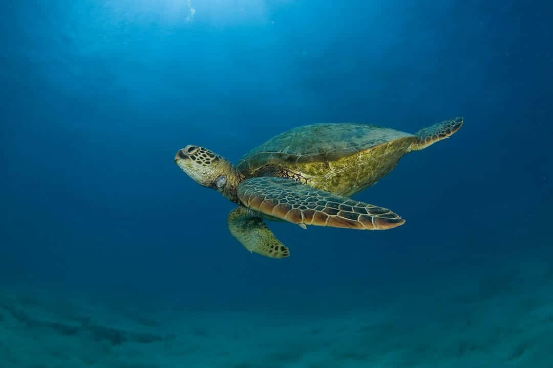 A Green Turtle Swimming In The Ocean Wallpaper -