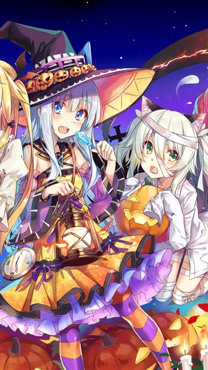 A Group Of Anime Characters Dressed Up For Halloween Wallpaper