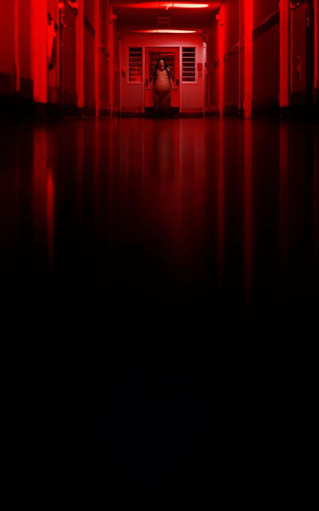 Related A Hallway With Red Lights And A Person In The Middle Wallpaper