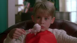 A House Decorated For Christmas With Lights And Decorations Wallpaper