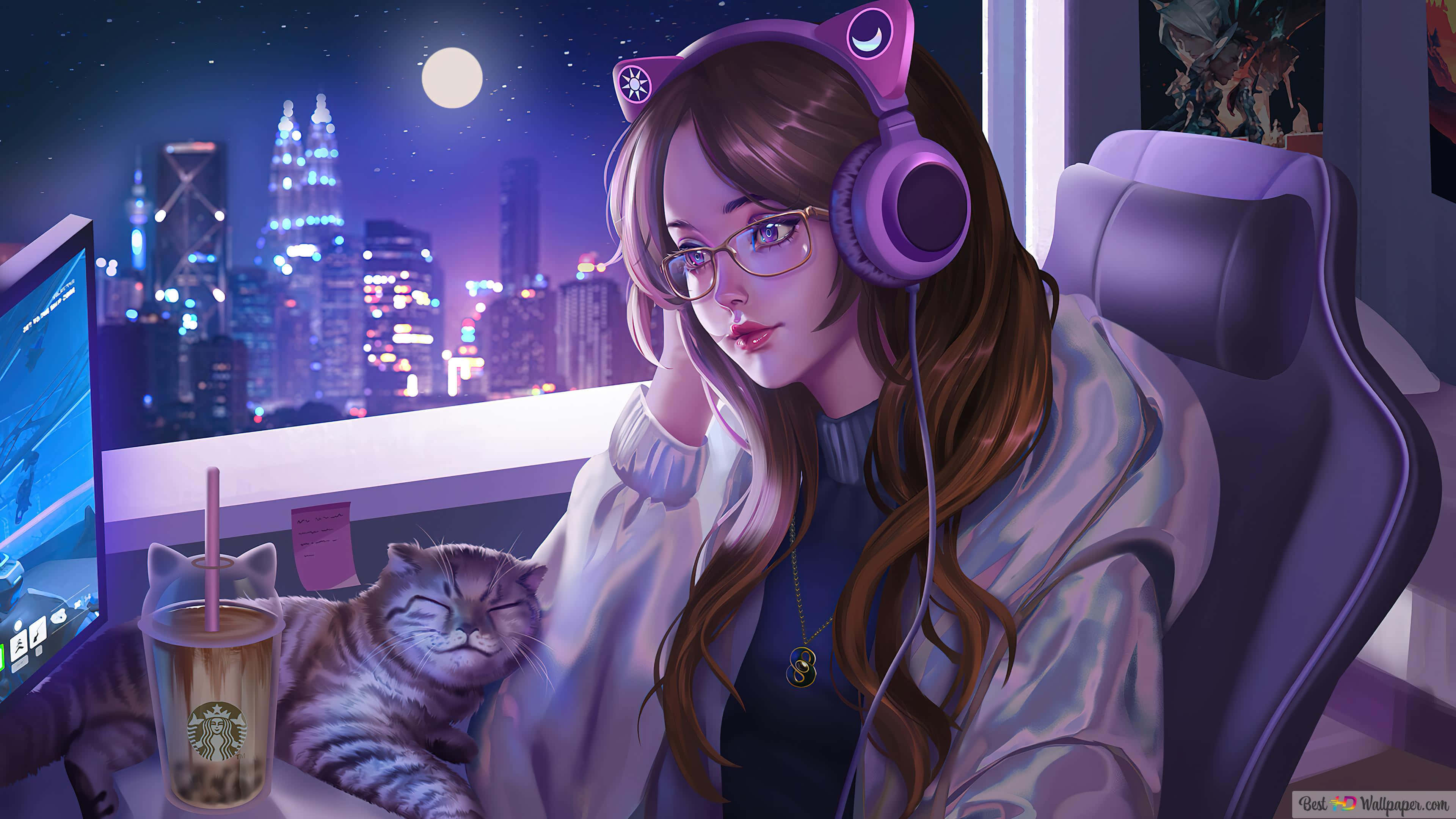 Related A Kawaii Gaming Girl Enjoys Her Video Games Wallpaper