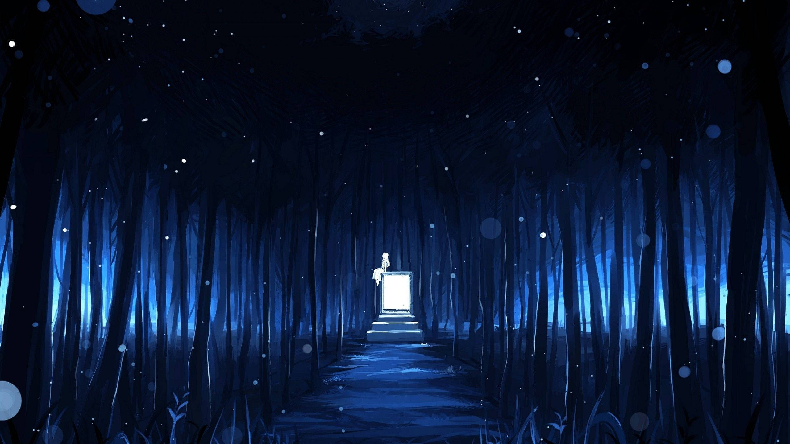 An Enchanting Anime Landscape Of Rich Blues. Wallpaper -
